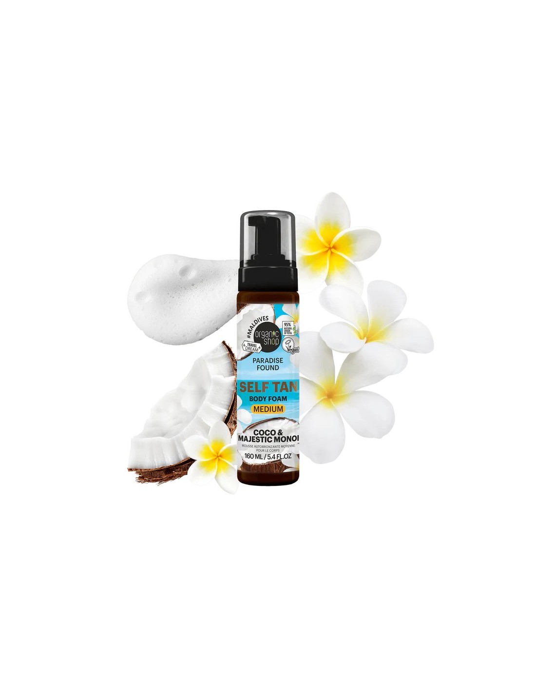 Espuma autobronceadora corporal de tono medio. Coco & Majestic Monoi 160ml