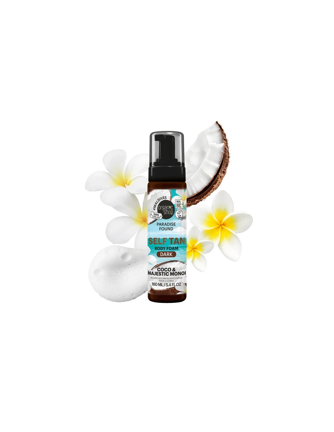 Espuma autobronceadora corporal oscura. Coco & Majestic Monoi
